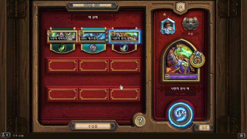 | 효과 | 내 덱에서 비용이 (8)이상인 무작위 하수인을 하나 소환하고 내 다음 턴이 끝날 때, 그 하수인을 처치합니다. | ||