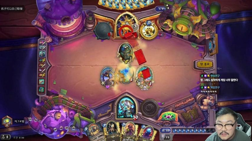 | 효과 | 비밀 : 적 영웅이 카드를 낸 후에 이번 차례에 내는 카드 한 장 당 무작위 적 캐릭터에게 2의 피해를 줍니다. | ||