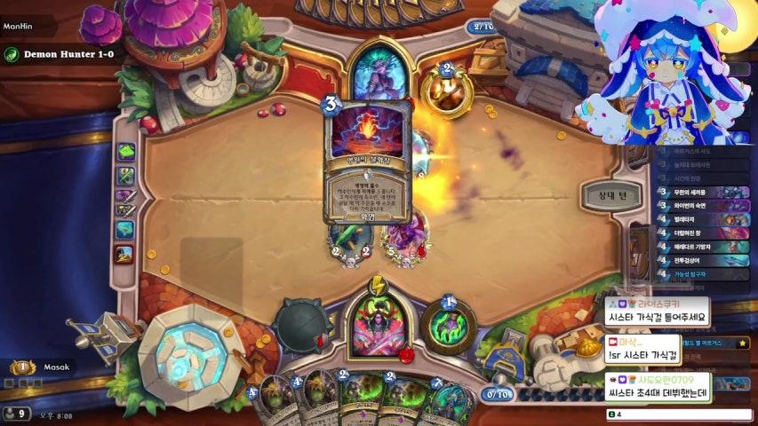 | 효과 | 하수인을 하나 선택합니다. 다음 내 턴이 시작할 때, 선택한 하수인과 양옆의 있는 하수인들에게 피해를 5 줍니다. | ||