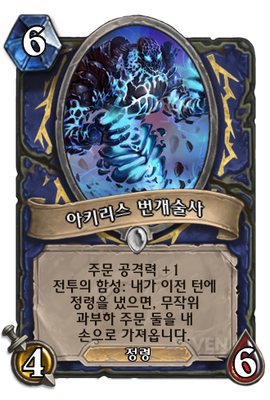 | 효과 | 주문 공격력 +1 전투의 함성: 내가 이전 턴에 정령을 냈으면, 무작위 과부하 주문 둘을 내 손으로 가져옵니다. |