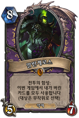 | 효과 | 전투의 함성: 이번 게임에서 내가 버린 카드를 모두 사용합니다 (대상은 무작위로 선택) |