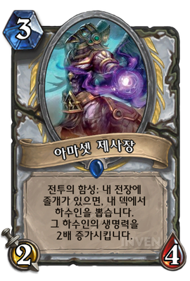| 효과 | 전투의 함성: 내 전장에 졸개가 있으면, 내 덱에서 하수인을 뽑습니다. 그 하수인의 생명력을 2배 증가시킵니다. |