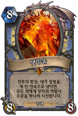 | 효과 | 전투의 함성: 내가 정령을 세 턴 연속으로 냈다면, 모든 적에게 무작위 마법사 주문을 하나씩 시전합니다. |