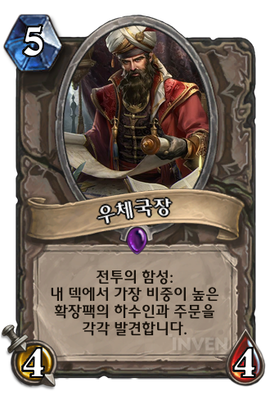 | 효과 | 전투의 함성: 내 덱에서 가장 비중이 높은 확장팩의 하수인과 주문을 각각 발견합니다. |