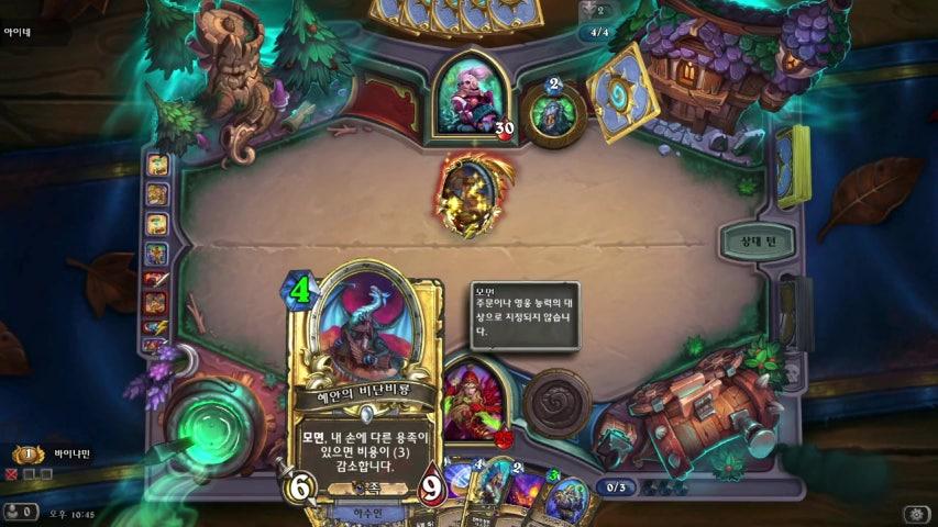 | 효과 | 이 하수인에게 피해를 받은 하수인을 주인의 손으로 돌려보냅니다. 주문폭주: 무작위 적 하수인을 공격합니다. |