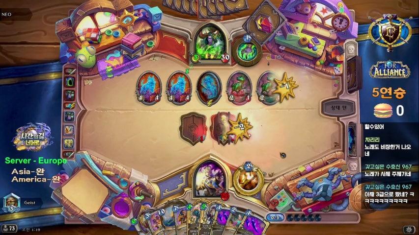 | 효과 | 내 손에서 비용이 가장 낮은 하수인에게 +2/+2를 부여합니다. 그 하수인의 공격력이 4 이상이면, 비용이 (2) 감소합니다. |