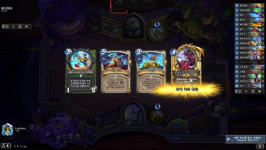 | 효과 | 부가 퀘스트 : 내 전설 하수인이 셋 죽어야 합니다. 보상 : 다음에 내는 내 하수인이 그 전설 하수인의 모든 능력을 얻습니다. |