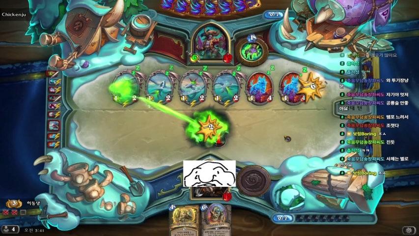 | 효과 | 상대가 이제부터 카드를 뽑을때 마다 탈진 카드를 같이 뽑습니다. 투기장에서 탈락 시킨 영웅의 수만큼 마나가 감소합니다. |
