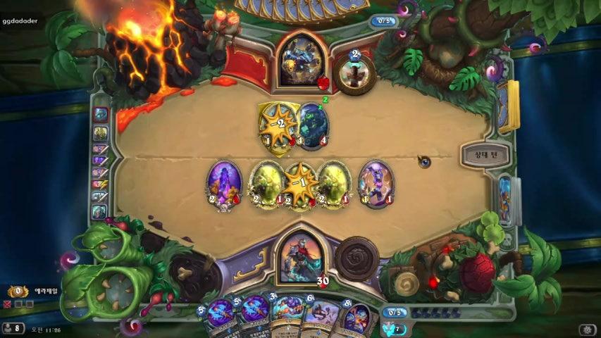 | 효과 | 전투의 함성 : 상대가 이번 게임에서 감정표현을 사용했다면 그 회수만큼 무작위 적 하수인을 처치하고 상대 손에 있는 무작위 카드의 비용을 (1) 증가시킵니다. |