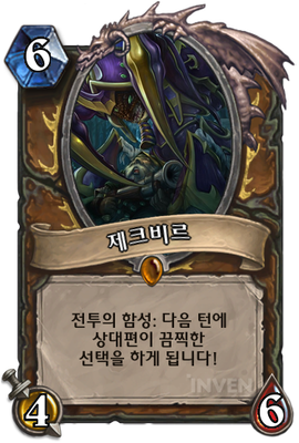 | 부연 설명 | [끝없는 가시] 상대편의 손, 덱, 전장에 있는 모든 하수인에게 +1/+1을 부여합니다. [무한한 공포] 상대편의 손과 덱에 있는 모든 주문의 비용이 (1) 감소합니다. [혈기 주입 갑각] 상대편이 마나 수정을 2개 얻습니다. [낚시꾼의 거미줄] 상대편이 카드를 3장 뽑습니다. // 제가 이래서 솔플 콘텐츠를 좋아하는 겁니다. |