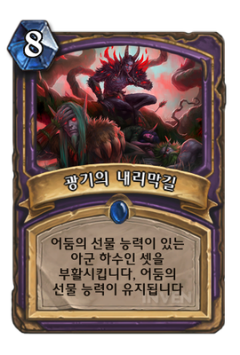 | 효과 | 어둠의 선물 능력이 있는 아군 하수인 셋을 부활시킵니다, 어둠의 선물 능력이 유지됩니다 |