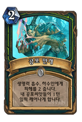 | 효과 | 생명력 흡수, 하수인에게 피해를 2 줍니다. 내 공포씨앗들이 1턴 일찍 깨어나게 합니다. |