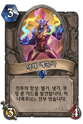 | 효과 | 전투의 함성: 혈기, 냉기, 부정 룬 카드를 발견합니다. 마나폭주(6): 전부 얻습니다. | ||
