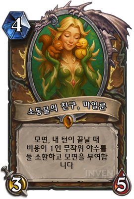 | 효과 | 모면, 내 턴이 끝날 때 비용이 1인 무작위 야수를 둘 소환하고 모면을 부여합니다 |