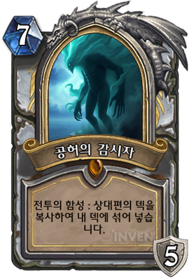| 부연 설명 | 영웅 능력 (2 코스트) : 카드를 뽑습니다. 그 카드가 상대편 덱에서 복사된 카드라면, 비용이 (2) 감소합니다. | ||