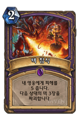 | 효과 | 내 영웅에게 피해를 5 줍니다. 다음 상대의 덱 3장을 파괴합니다. |