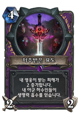 | 효과 | 내 영웅이 받는 피해가 2 증가합니다. 내 아군 하수인들이 생명력 흡수를 얻습니다. |