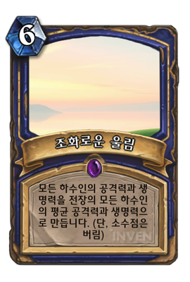 | 효과 | 모든 하수인의 공격력과 생명력을 전장의 모든 하수인의 평균 공격력과 생명력으로 만듭니다. (단, 소수점은 버림) | ||