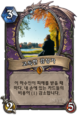 | 효과 | 이 하수인이 피해를 받을 때마다, 내 손에 있는 카드들의 비용이 (1) 감소합니다. | ||