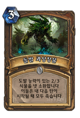| 효과 | 도발 능력이 있는 2/3 식물을 넷 소환합니다 이들은 내 다음 턴이 시작될 때 모두 죽습니다 |