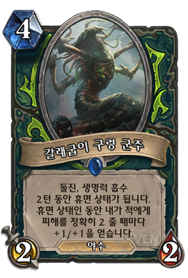 | 효과 | 돌진, 생명력 흡수 2턴 동안 휴면 상태가 됩니다. 휴면 상태인 동안 내가 적에게 피해를 정확히 2 줄 때마다 +1/+1을 얻습니다. |