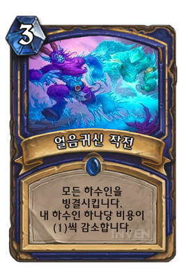 | 효과 | 모든 하수인을 빙결시킵니다. 내 하수인 하나당 비용이 (1)씩 감소합니다. |