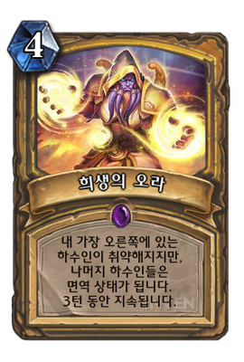 | 효과 | 내 가장 오른쪽에 있는 하수인이 취약해지지만, 나머지 하수인들은 면역 상태가 됩니다. 3턴 동안 지속됩니다. |