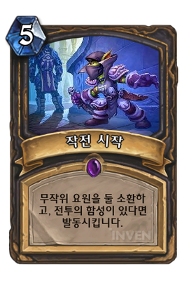 | 효과 | 무작위 요원을 둘 소환하고, 전투의 함성이 있다면 발동시킵니다. | ||