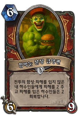 | 효과 | 전투의 함성:피해를 입지 않은 내 하수인들에게 피해를 2 주고 피해를 입은 하수인들은 2 회복합니다. | ||