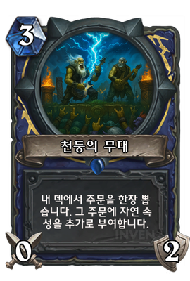 | 효과 | 내 덱에서 주문을 한장 뽑습니다. 그 주문에 자연 속성을 추가로 부여합니다. | ||