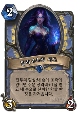 | 효과 | 전투의 함성:내 손에 용족이 있다면 주문 공격력+1을 얻고 내 손으로 신비한 화살 한 장을 가져옵니다. | ||