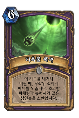 | 효과 | 이 카드를 내거나 버릴 때, 무작위 적에게 피해를 6 줍니다. 초과한 피해량과 능력치가 같은 심연불을 소환합니다. |