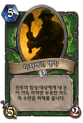 | 효과 | 전투의 함성:대상에게 내 손이 가득 차려면 부족한 카드의 수만큼 피해를 줍니다. | ||