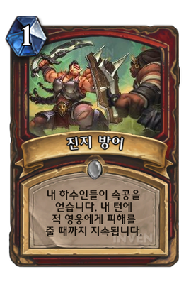 | 효과 | 내 하수인들이 속공을 얻습니다. 내 턴에 적 영웅에게 피해를 줄 때까지 지속됩니다. |