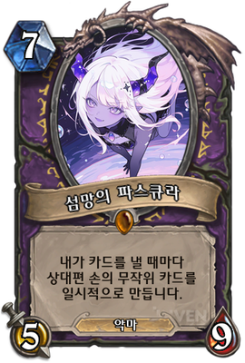 | 효과 | 내가 카드를 낼 때마다 상대편 손의 무작위 카드를 일시적으로 만듭니다. |