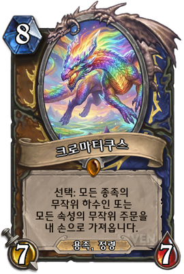 | 효과 | 선택: 모든 종족의 무작위 하수인 또는 모든 속성의 무작위 주문을 내 손으로 가져옵니다. |