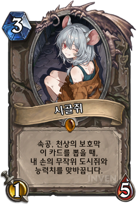 | 효과 | 속공, 천상의 보호막 이 카드를 뽑을 때, 내 손의 무작위 도시쥐와 능력치를 맞바꿉니다. |