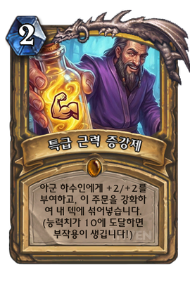 | 효과 | 아군 하수인에게 +2/+2를 부여하고, 이 주문을 강화하여 내 덱에 섞어넣습니다. (능력치가 10에 도달하면 부작용이 생깁니다!) |