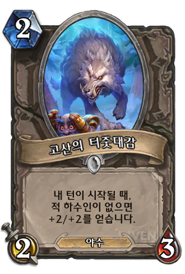 | 효과 | 내 턴이 시작될 때, 적 하수인이 없으면 +2/+2를 얻습니다. |