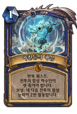 | 효과 | 반복 퀘스트: 전투의 함성 하수인이 셋 죽어야 합니다. 보상: 내 다음 전투의 함성 능력이 2번 발동합니다. |