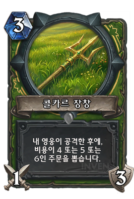 | 효과 | 내 영웅이 공격한 후에, 비용이 4 또는 5 또는 6인 주문을 뽑습니다. |