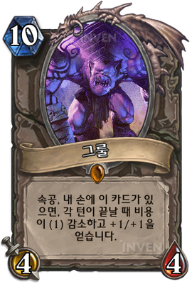 | 효과 | 속공, 내 손에 이 카드가 있으면, 각 턴이 끝날 때 비용이 (1) 감소하고 +1/+1을 얻습니다. | ||