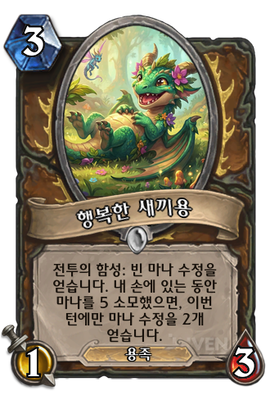 | 부연 설명 | 전투의 함성: 빈 마나 수정을 얻습니다. 내 손에 있는 동안 마나를 5 소모했으면, 이번 턴에만 마나 수정을 2개 얻습니다. |
