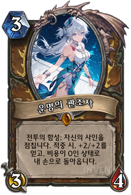 | 효과 | 전투의 함성: 자신의 사인을 점칩니다. 적중 시, +2/+2를 얻고, 비용이 0인 상태로 내 손으로 돌아옵니다. |