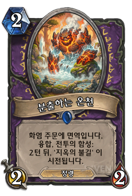 | 부연 설명 | 융합: 내 손에 같은 카드 2장이 있으면 더 강력해진 카드로 합칠 수 있습니다. 융합 후: 2코 3/2, 화염 주문에 면역입니다. 융합됨, 전투의 함성: 내 다음 턴에 ‘지옥의 불길‘ 이 시전됩니다. 이 하수인이 죽어도 시전됩니다 |