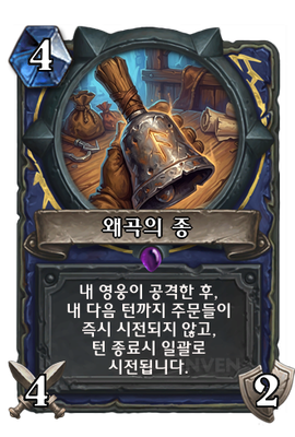 | 효과 | 내 영웅이 공격한 후, 내 다음 턴까지 주문들이 즉시 시전되지 않고, 턴 종료시 일괄로 시전됩니다. |