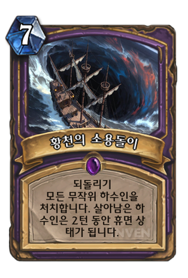| 효과 | 되돌리기 모든 무작위 하수인을 처치합니다. 살아남은 하수인은 2턴 동안 휴면 상태가 됩니다. |