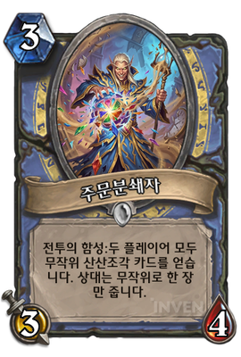 | 효과 | 전투의 함성:두 플레이어 모두 무작위 산산조각 카드를 얻습니다. 상대는 무작위로 한 장만 줍니다. | ||