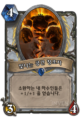 | 효과 | 소환하는 내 하수인들은 +1/+1 을 얻습니다. |