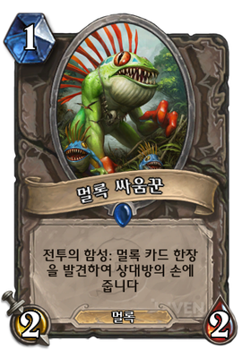 | 효과 | 전투의 함성: 멀록 카드 한장을 발견하여 상대방의 손에 줍니다 | ||